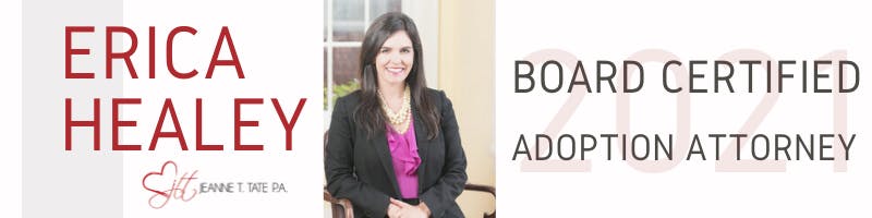 Tampa, FL — Jeanne Tate P.A. announced today that Erica Healey, Adoption Attorney in the Tampa office, has earned Board Certification in Adoption from The Florida Bar Board of Legal Specialization & Education. This is a monumental milestone in Healey’s legal career as she is now distinguished as a specialist and expert in the area of Adoption by The Florida Bar.